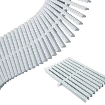 Swimming pool grating made of PP, are resistant to the action of UV rays, have an non-slip surface and high mechanical resistance, and cannot be altered by chemical or atmospheric agents. Consisting of modular plates for straight or curved stretches with a quick-click assembly system. The grating has a certain degree of elasticity for assembly purposes, as well as preventing potential shrinking and expansion due to the effect of temperature differences.